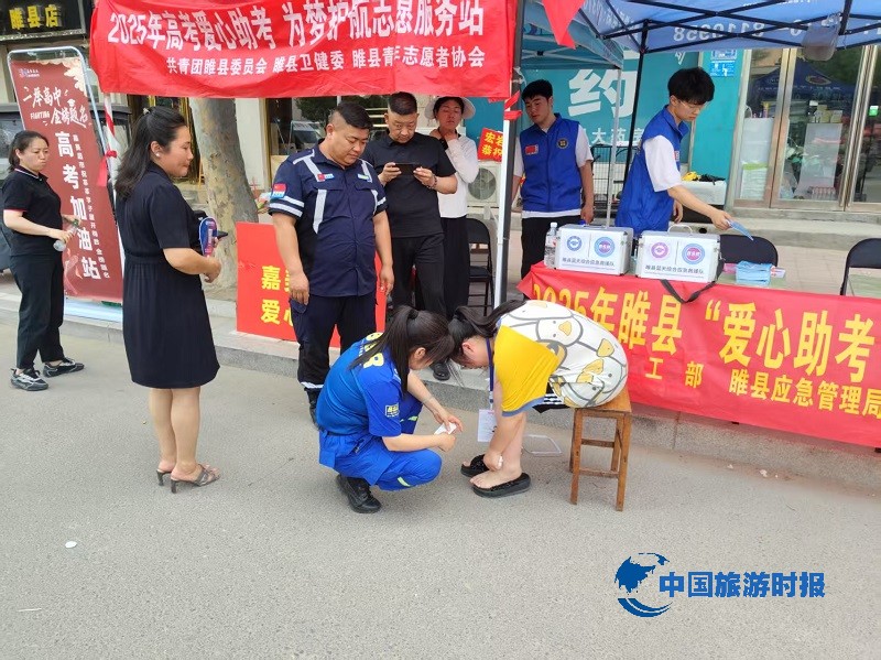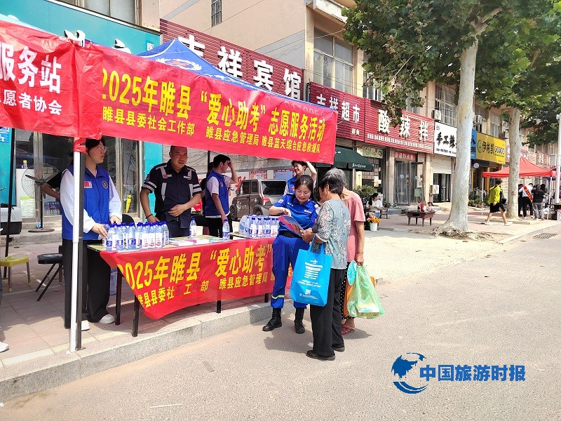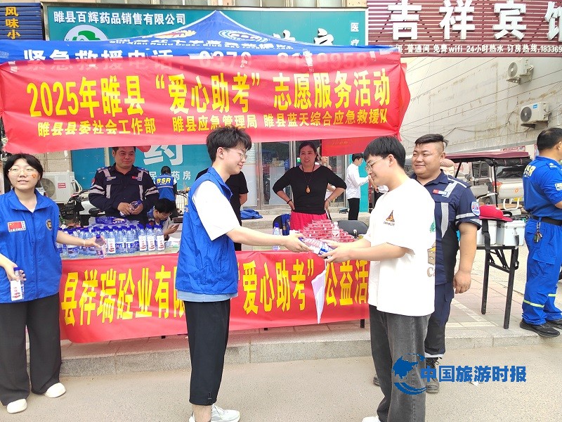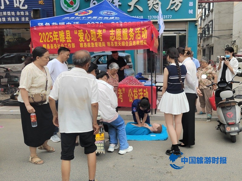 中国旅游时报河南睢县讯(通讯员:王丽娜)又到一年高考季,为给广大考生提供贴心服务,弘扬“奉献、友爱、互助、进步”的志愿服务精神。2025年6月7、8、9日高考期间,睢县县委社会工作部、睢县应急管理局联合睢县蓝天综合应急救援队睢县回族高级中学考点外,开展内容多样化的“爱心助考”活动,在考场外的志愿服务点摆起了普及宣传应急安全知识和救护知识的“急救地摊”,为陪考家长普及宣传防灾减灾、家庭应急避险知识和应急救护知识,并免费提供矿泉水及常用应急药品。