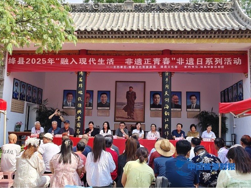 中国旅游时报山西讯(文: 张广瑞 图: 史公社) 6月13日,绛县在申家百和院以“融入现代生活——非遗正青春”为主题,举办“文化与自然遗产日”非遗宣传展示系列活动。通过参观宣传版面、展览非遗项目、分享传承故事、表演非遗节目、现场书法创作等形式,让群众近距离触摸绛县非遗千年文脉,探寻故绛深厚文化底蕴,共享非遗文化盛宴,见证传统文化时代新生,增强全县干部群众让沉睡的文化“活”起来、走出去的使命感。