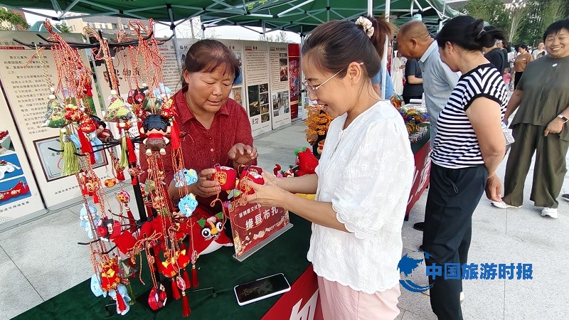 中国旅游时报山西讯(通讯员 张广瑞 陶凌燕) 7月16——20日,绛县市民广场。该县一年一度的消夏文化周在群众的欢声笑语中盛大举行,充满乡土气息与文化底蕴的非遗“盛宴”也借机精彩呈现。清端小米醋、书画字、布扎、尧乡茶制作技艺、山桃核按摩鞋、杨府老酒、餶糘、石子饼、铝丝编织、周氏家谱等众多非遗项目,在绛县文化旅游局组织的“非遗”集市上纷纷亮相、各展风彩,吸引了大批民众逛“街”观赏、体验、选购,为炎炎夏日增添了浓韵的文化氛围和靓丽的风景。